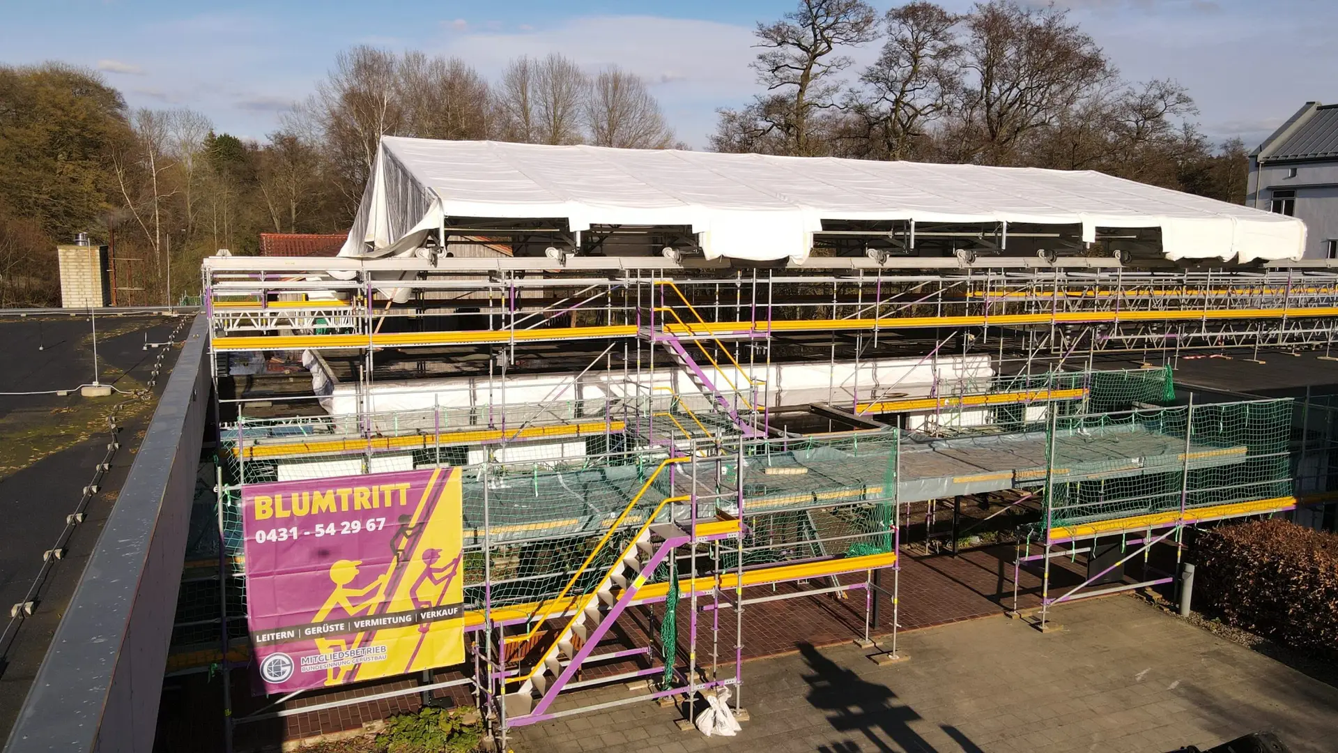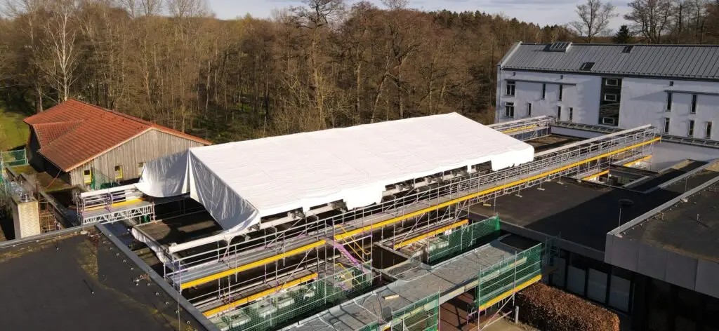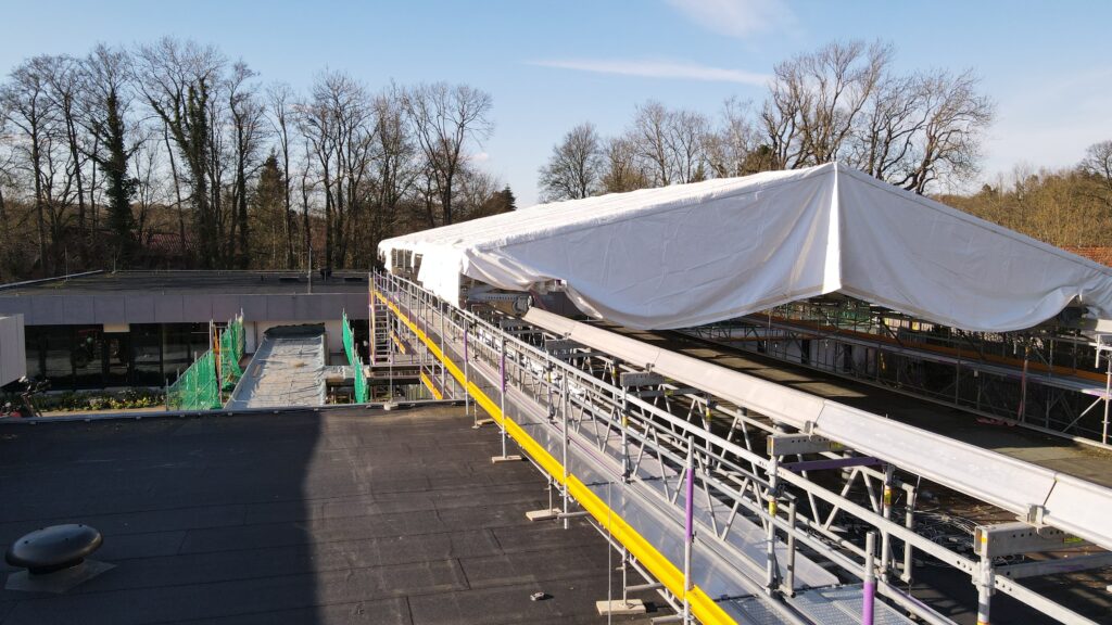 Gerüstsystem: PERI UP EASY – Fassadengerüst, PERI LGS Kederdach