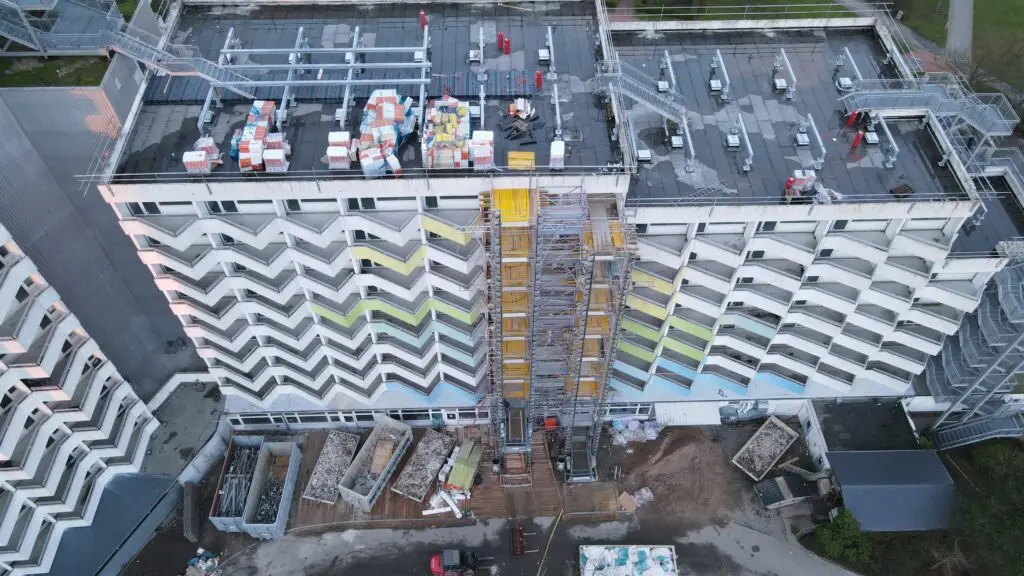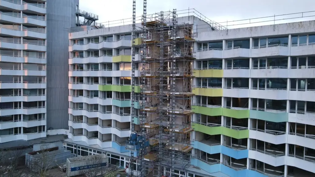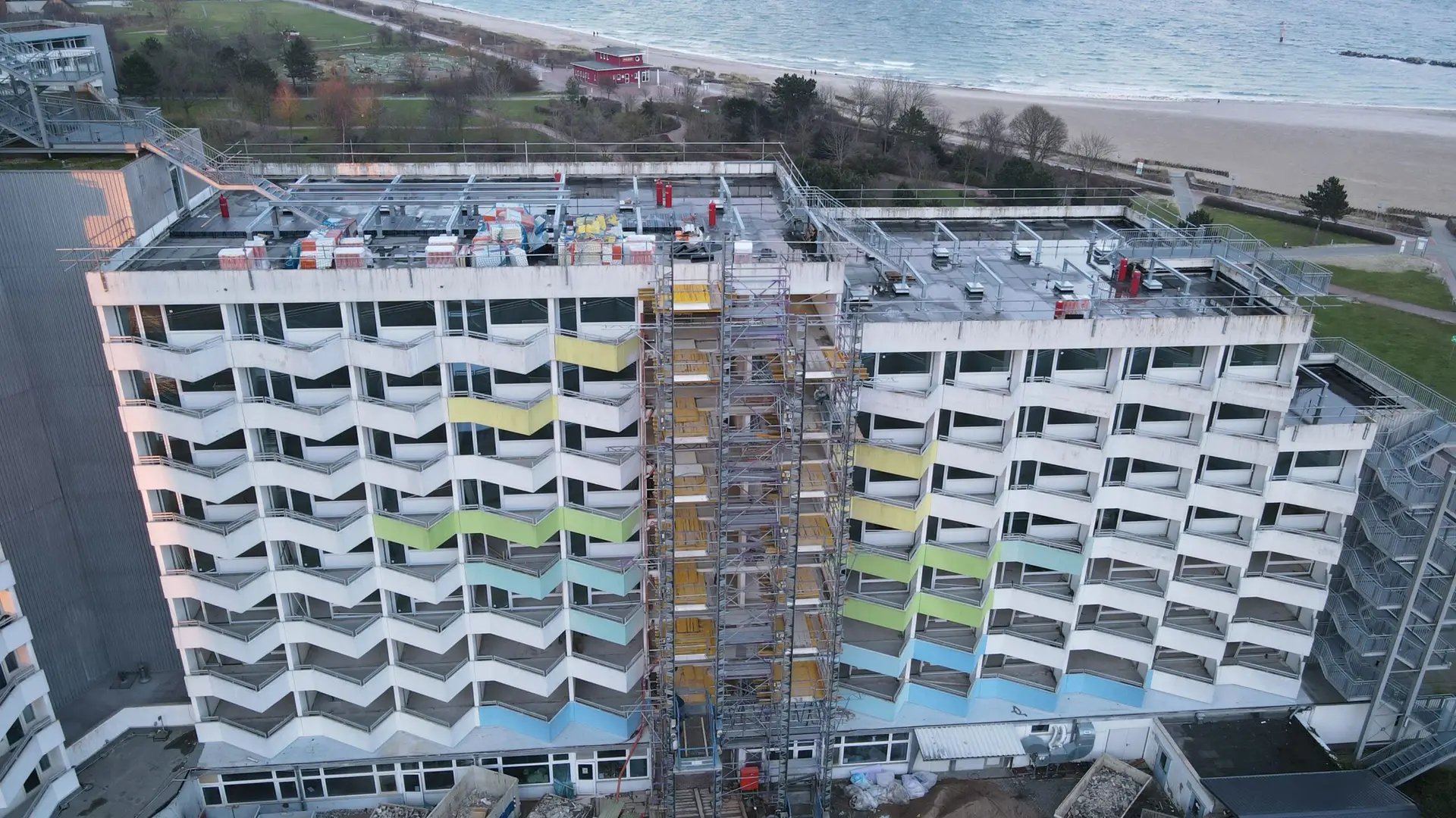Ostseebad Damp Projekt Details Auftraggeber:Ort: Damp Gerüstfläche:Bauzeit: 2023 Gerüstsystem: PERI UP FLEX – Traggerüst, GEDA 1500 Z/ZP